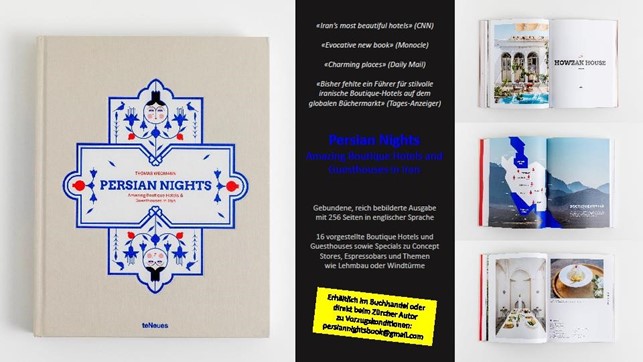 Schliesslich erinnern wir unsere Leser, die noch nicht Mitglied unserer Kammer sind, an unser letztjähriges Angebot. Wer mit der Einzahlung des Jahresbeitrags für 2023 Mitglied wird, erhält als Willkommensgeschenk das prachtvolle Buch Persian Nights über die schönsten Boutique-Hotels in Iran von Thomas Wegmann, das wir unseren Mitgliedern als Jahresend-Gabe 2021 überreicht haben. Beachten Sie dazu den Anhang. Wir werden uns gestatten, die demnächst zum Versand gelangenden Beitragsrechnungen unverbindlich auch unseren Interessenten zuzustellen.